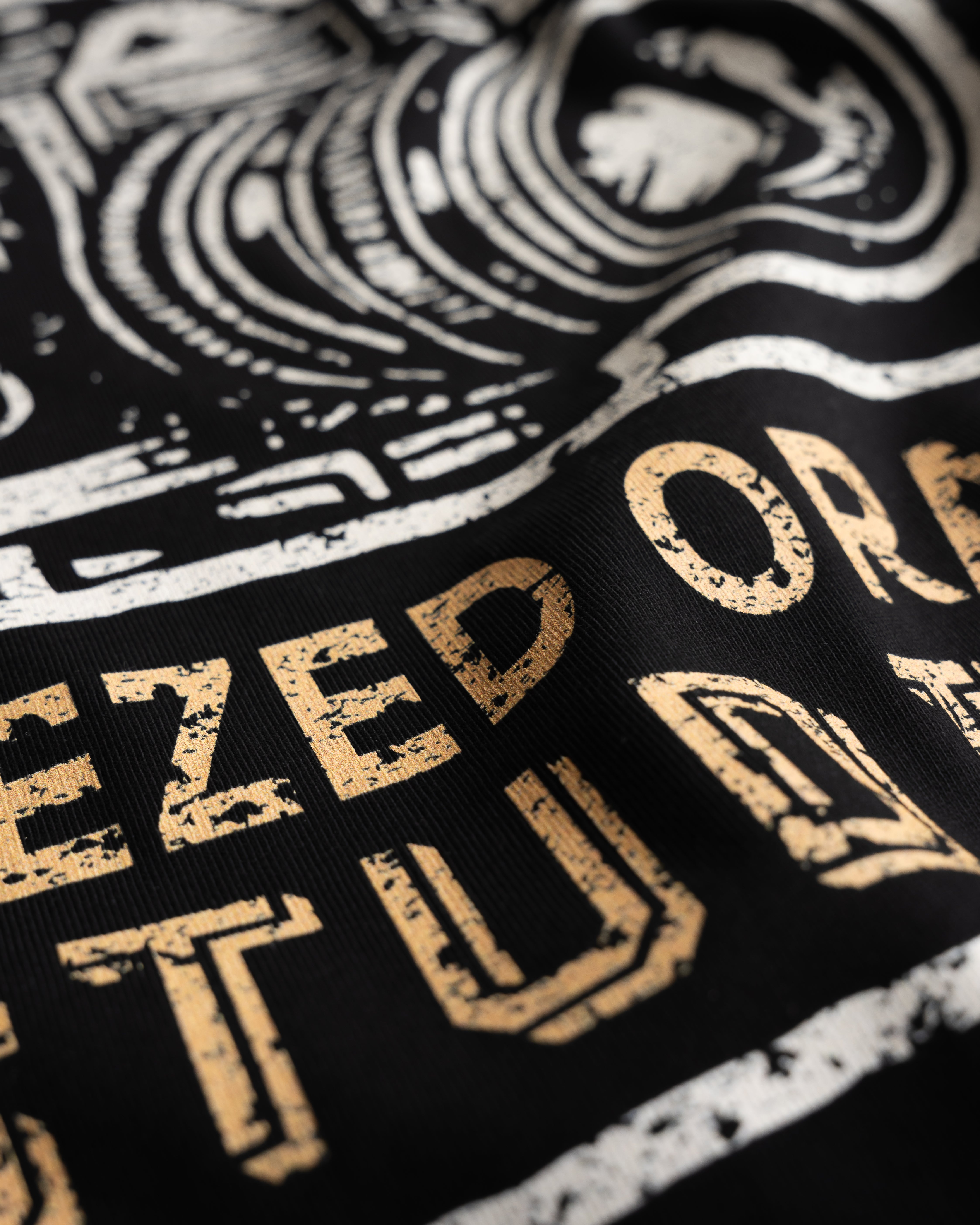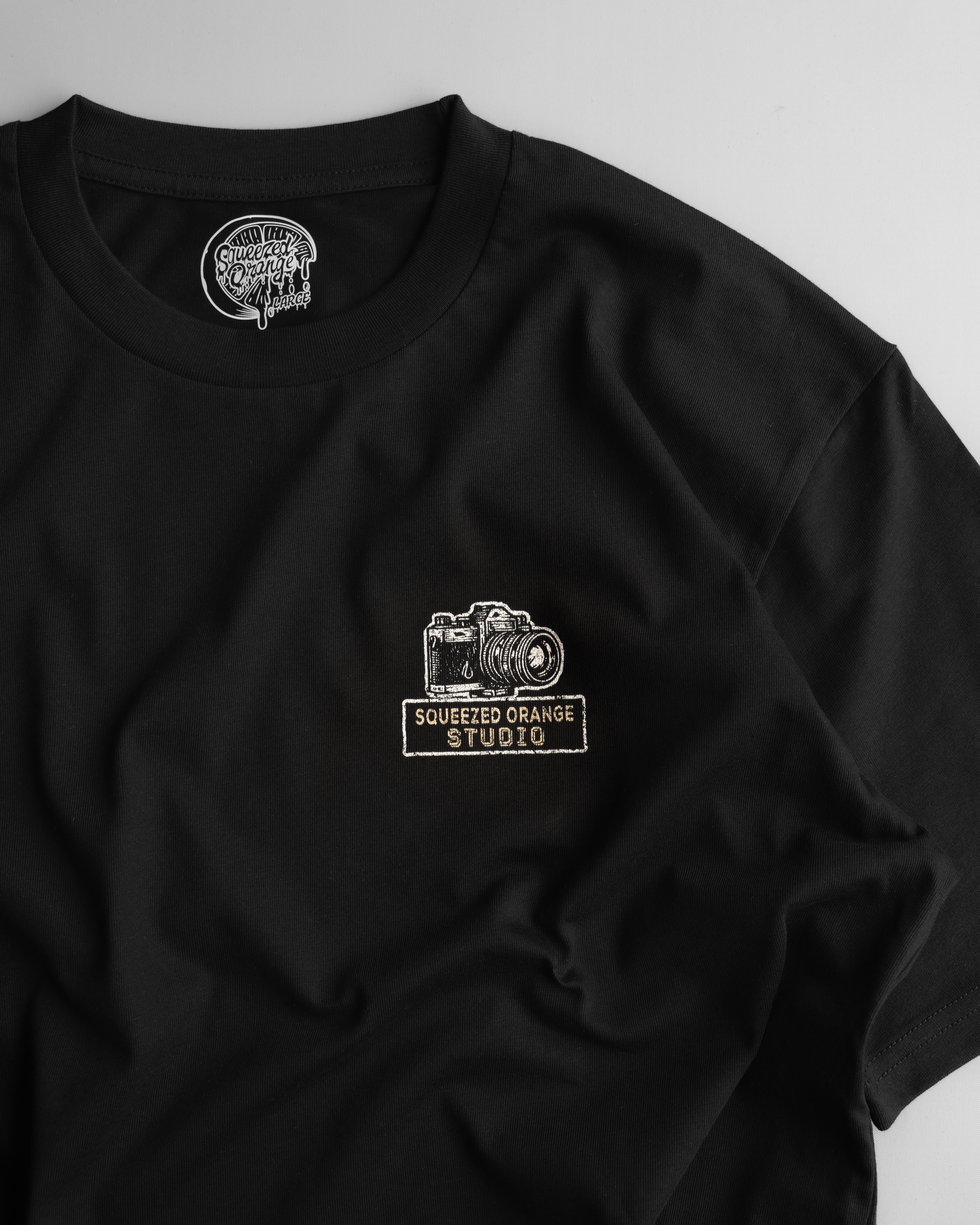 Squeezed Orange Studios Tshirt. Printed on the AScolour Minus 5 Tee, including all the finishing details. Just as you'd expect!